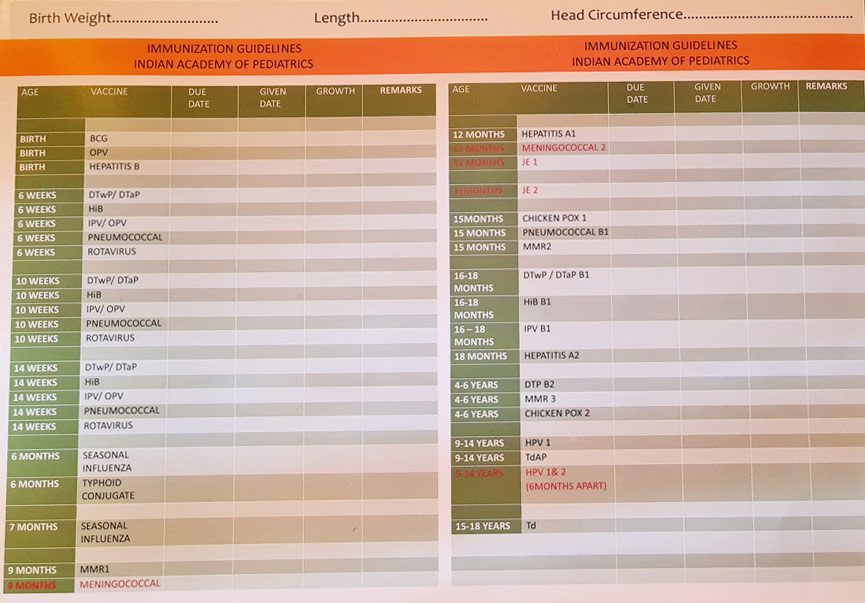Includes providing preventive immunisation of newborns, children and adolescent as per the recent guidelines as well as counselling patients regarding newer vaccines.